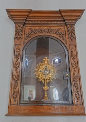In 1987 the Vatican sent to Magdalena de Kino, a non insigni relic of Saint Francis Xavier, one the founders of the Jesuit order and its first missionary. The relic is contained in the monstrance in the glass reliquarie. The relic is a non insigni relic or insignificant relic because it is a small part of the saint's body. A non insigni relic is a type of a former category called a first-class relic that the Vatican has no longer used since 2017. The relic in the monstrance is a small bone splinter from the clavicle of Xavier. The pilgrims arriving in the Capilla de San Francisco may venerate the relic as a means for connecting to Xavier's holiness for God's divine intercession in answer to their prayers, for instance, a prayer to heal an illness.